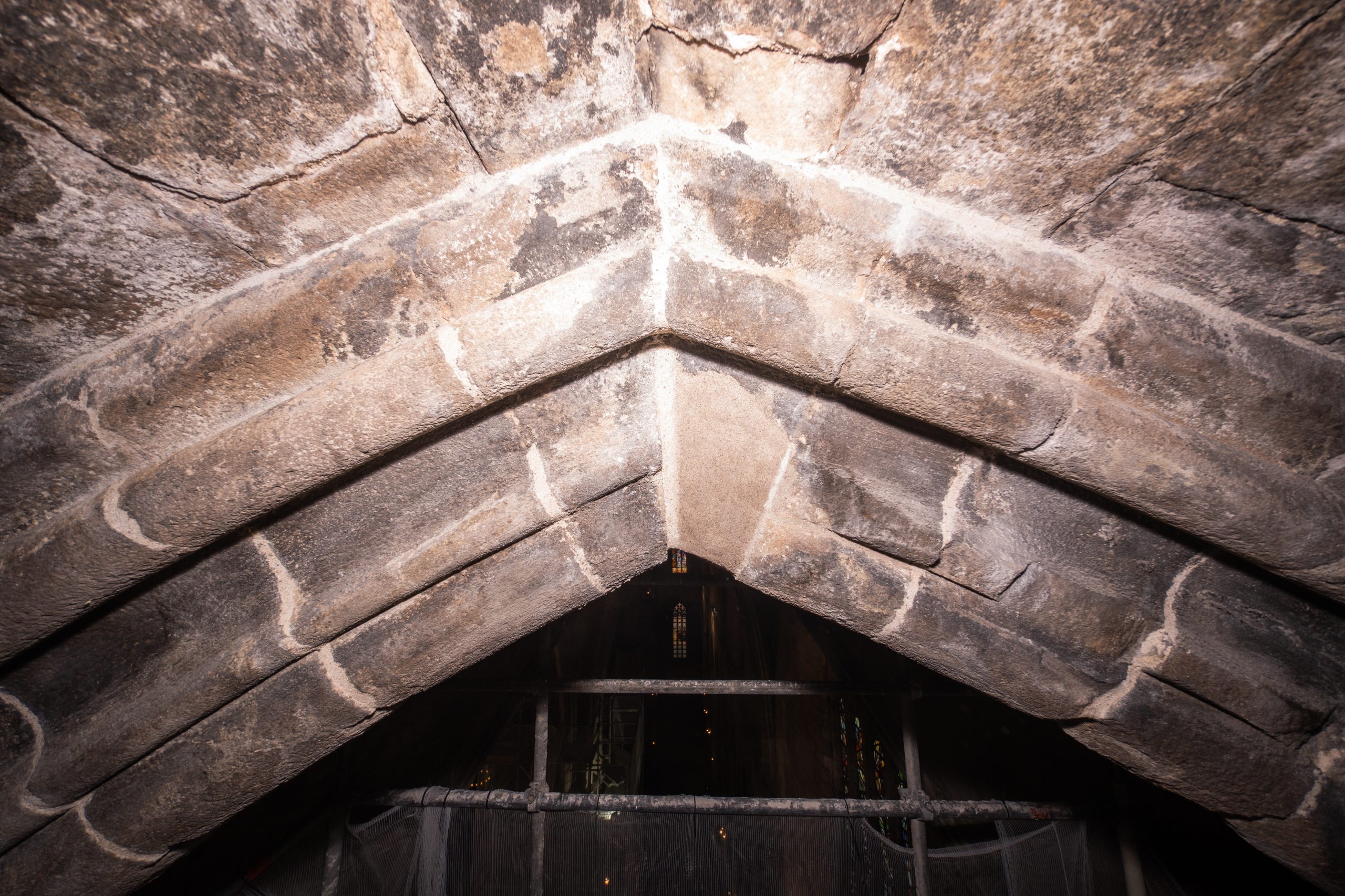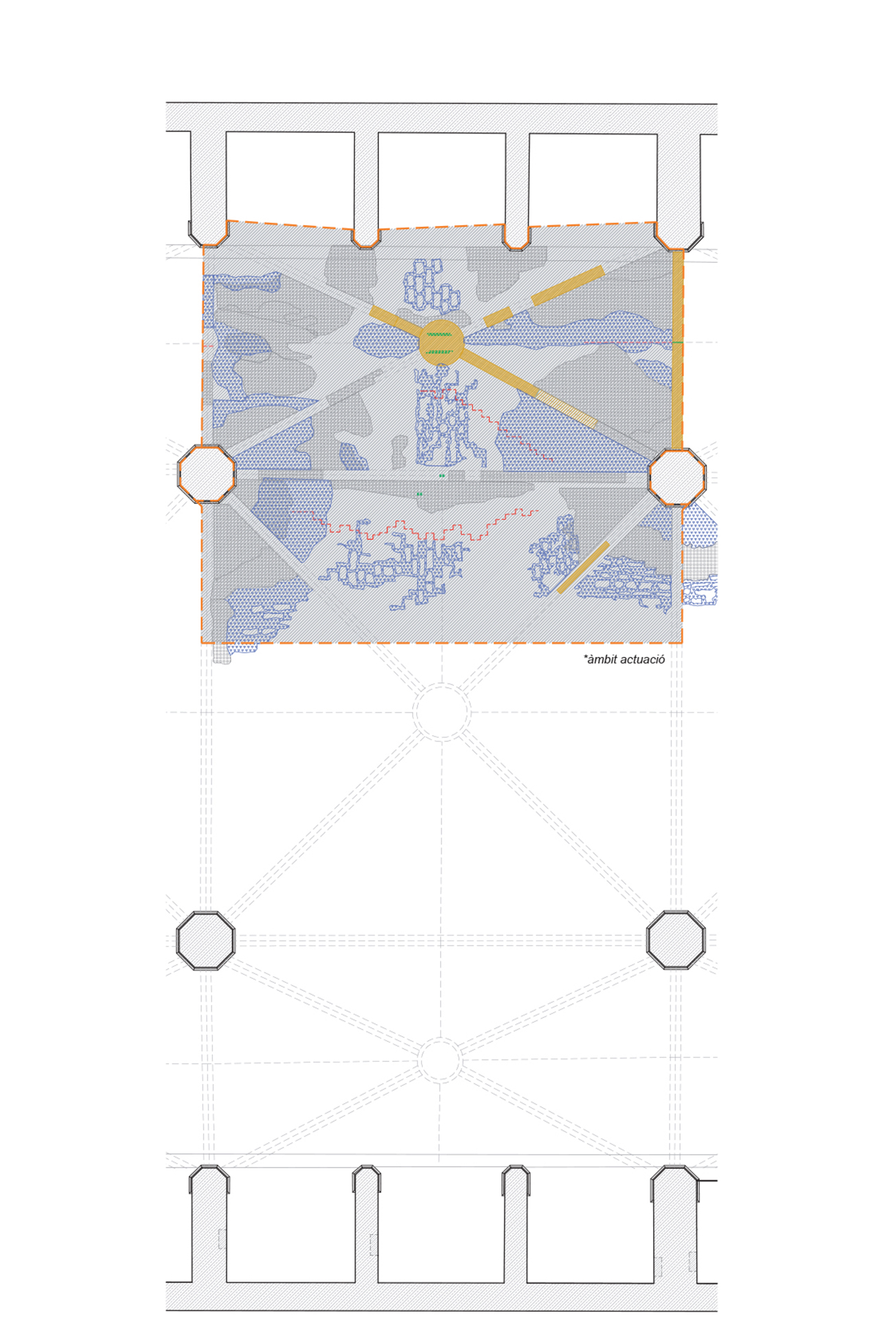 Las obras han consistido en la limpieza general de la mampostería y en la eliminación de manchas y restos de hollín. También se han recuperado los encintados históricos, en algunos casos con restos pictóricos que resaltan la junta; además, se han rejuntado las pérdidas de mortero entre sillares. Los nervios de las arcuaciones, especialmente afectados por el fuego, se han consolidado y completado volumétricamente. Destaca por el buen nivel de conservación algunas llaves de bóveda, que bajo el hollín, conservaban su acabado original.